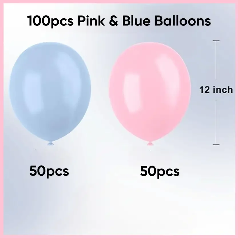 ANILOONS Solid Pink Pastel & Blue Pastel Decoration Kit Balloon (Pink, Blue, Pack of 100)